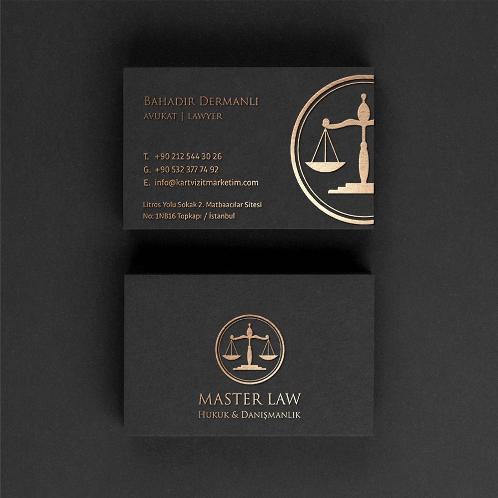 Ürünümüz themis temalı, siyah hamur kağıt üzerine altın varak baskılıdır. Çift taraf olarak düzenlenmektedir. Tasarıma var ise kendi logonuz eklenebilir. Ürün siparişi sonrası bilgilerinizle tasarım hazırlanarak tarafınıza gönderimi yapılmaktadır.ÜRÜN ÖZEL OLARAK ÜRETİLDİĞİ İÇİN STOKTA YOK UYARISI VERMEKTEDİR. WHATSAPP DESTEK HATTI ÜZERİNDEN SİPARİŞ VEREBİLİRSİNİZ!.1 KUTU İÇERİSİNDE 1000 ADET KARTVİZİT MEVCUTTUR. ADET BİLGİSİ 1 SEÇİLMESİ DURUMUNDA 1000 ADET KARTVİZİT ÜRETİLEREK TARAFINIZA GÖNDERİLECEKTİR.Baskı Tekniği: Altın VarakKağıt Türü: Siyah Hamur Fantazi KağıtKağıt Gramajı: 590 G/M2Kartvizit Ebadı : 85x50 mmBaskı Yönü: Çift TaraflıMiktar: 1000 AdetÜrün Kodu: avyldz-1001Altın yaldız baskılı ürünlerimizde üretim süresi yaklaşık olarak 1 haftadır. Altın varaklı avukat kartvizit modeli siparişiniz sonrası alınan onayın ardından üretimi gerçekleşmektedir. Bu üretimin ardından siparişiniz kargo ile tarafınıza ulaştırılmaktadır. Ürünün tasarımını sipariş öncesi görmek isterseniz ürün kod numarası ve bilgilerinizi bize mail veya whatsapp yoluyla iletebilirsiniz.